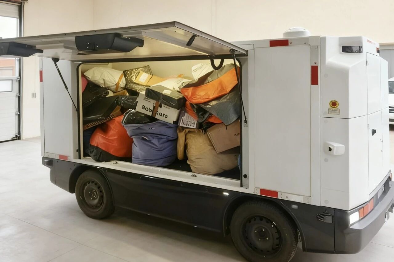 这些无人车不仅操作智能,性能也十分出色。据网点负责人介绍,每辆无人车单程可承载600~800个包裹,内部存储空间达到5-8立方米,最高时速为40公里,满电续航里程达180公里。