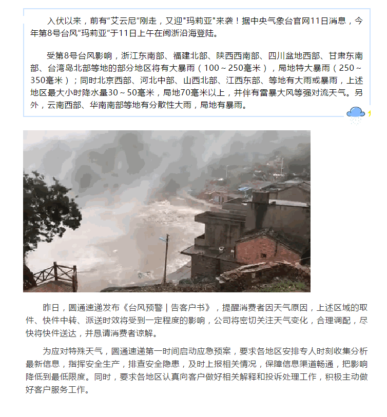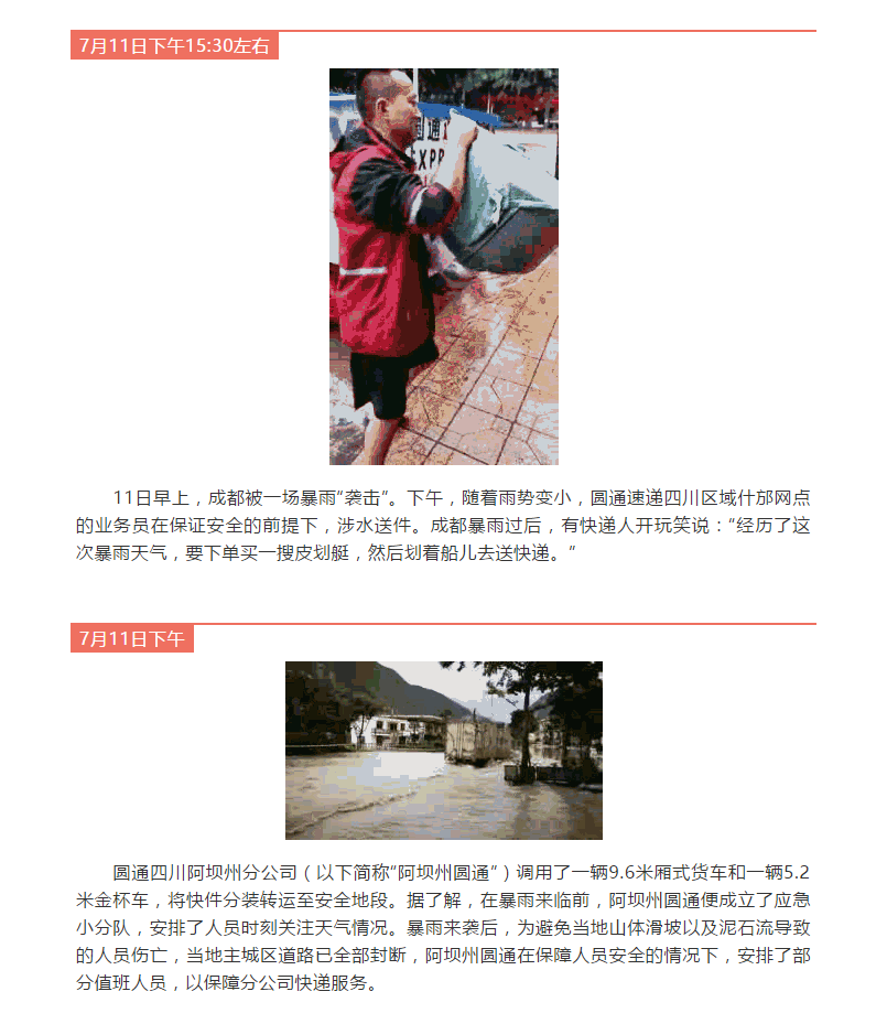 多地开启“暴雨模式”,圆通小哥蹚水送件!