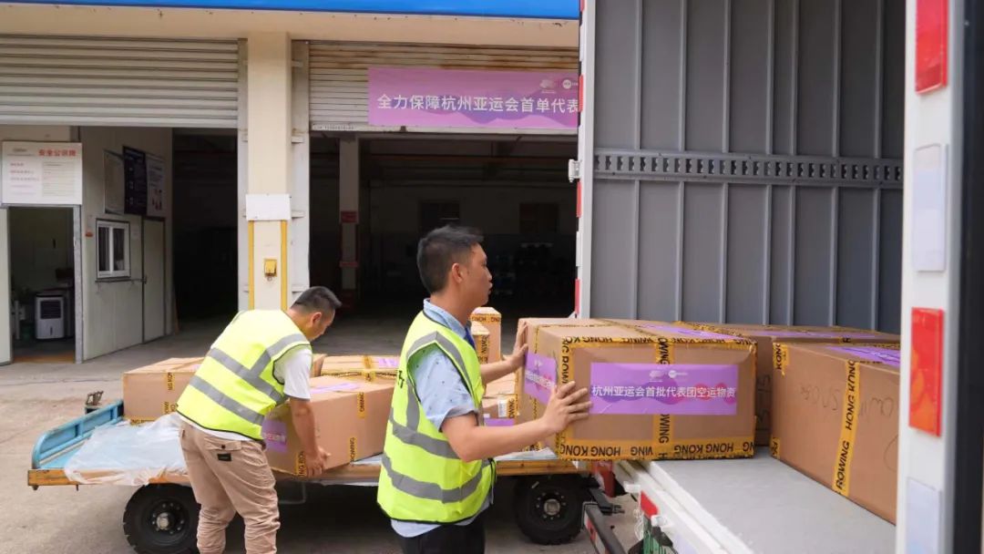 圆通速递主动沟通相关部门,通过空海联动,为首批亚运代表团物资提供全链路物流保障,确保物资安全、便捷送达目的地。