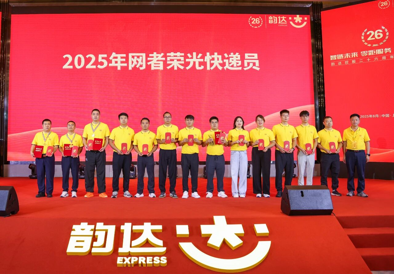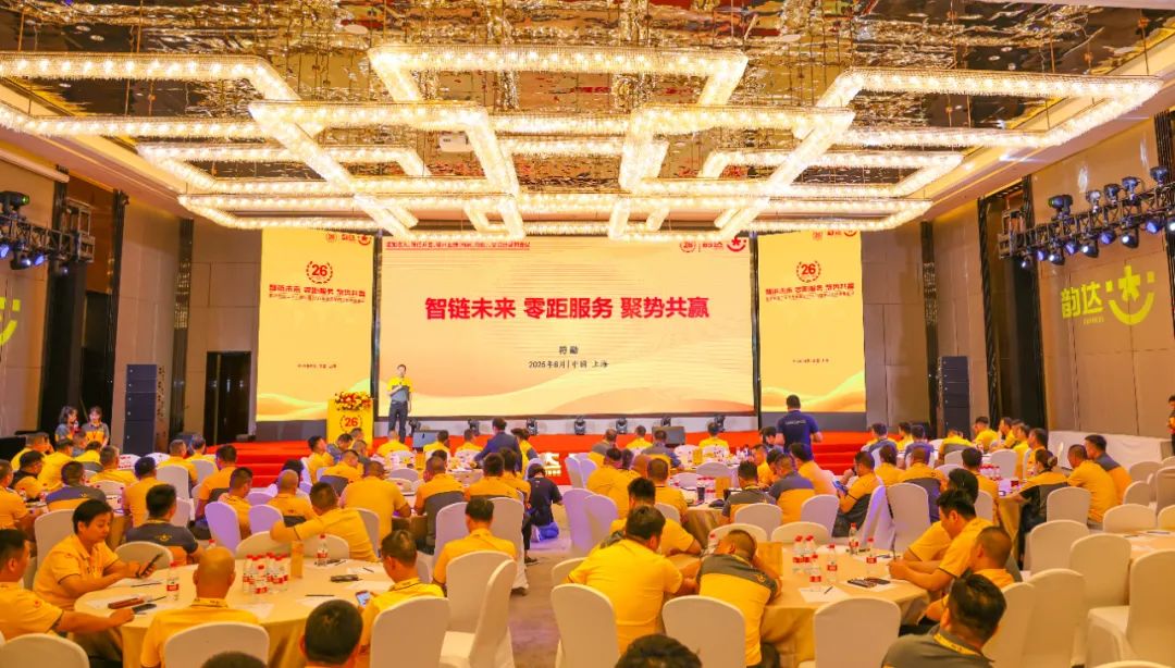 2025年08月11日来源:韵达速递2025年8月7日至8日,韵达在上海举办成立26周年庆活动,并同步召开2025年第四次协发委会议。本次会议以“智链未来,零距服务,聚势共赢”为主题,韵达董事长兼总裁,联席董事长兼高级副总裁,执行总裁,常务副总裁,各分管及快递板块副总裁等,总部相关中心、部门负责人,韵达快运总裁及相关中心、部门负责人,国际、供应链、冷链、产业园等板块相关负责人,全网协发委成员,以及获表彰的一线代表(分拣员、快递员、客服等)及参加2025年AI业务大赛的获奖代表,前期参加技能比武的优秀选手等近500人出席活动。