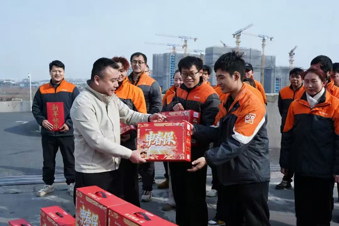 申通公司总裁韩永彦给一线员工送出新春慰问礼品,受访者供图