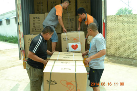 四川南溪申通人和食品厂员工一起装载爱心物资