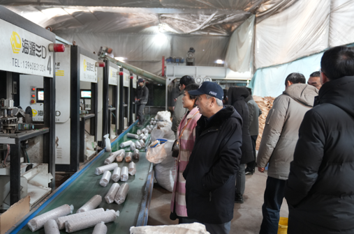 在平泉镇哈叭气村,调研组先后考察了菌棒厂和太阳能路灯项目。在菌棒厂,详细询问生产规模、技术支持、产品销路及带动村民就业增收等情况,了解到该项目有效盘活当地农业资源,为脱贫劳动力提供了就近就业岗位,助力村集体经济发展壮大;一路上崭新的太阳能路灯坐落两旁,彻底解决了村民